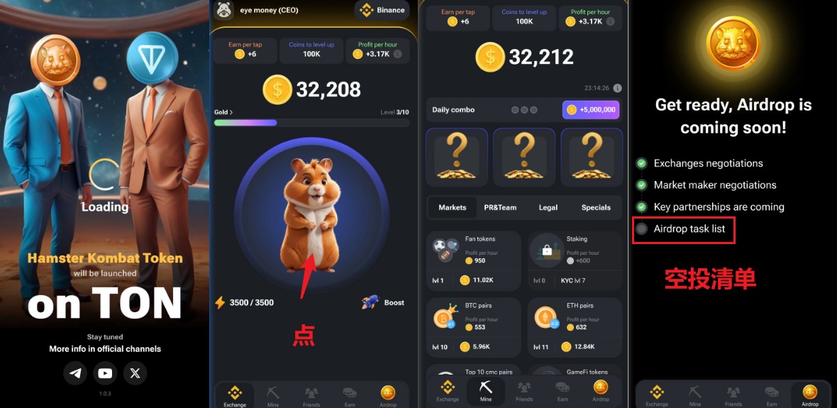 这个项目就是hamstEr_kombat,这个和第一个tap项目一样也是点点,这个项目主要是在于获取空投,因为是大头,所以我们要获取最大收益。