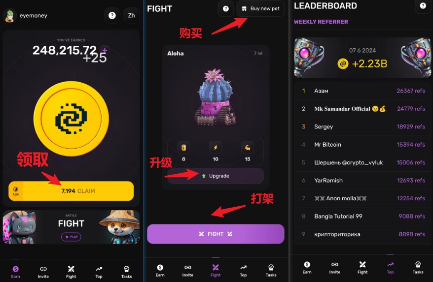 第五个项目:pixel项目,这个项目主要是升级自己的小宠物,你也可以去购买自己的宠物,然后和别人大家比赛去赚去coins,